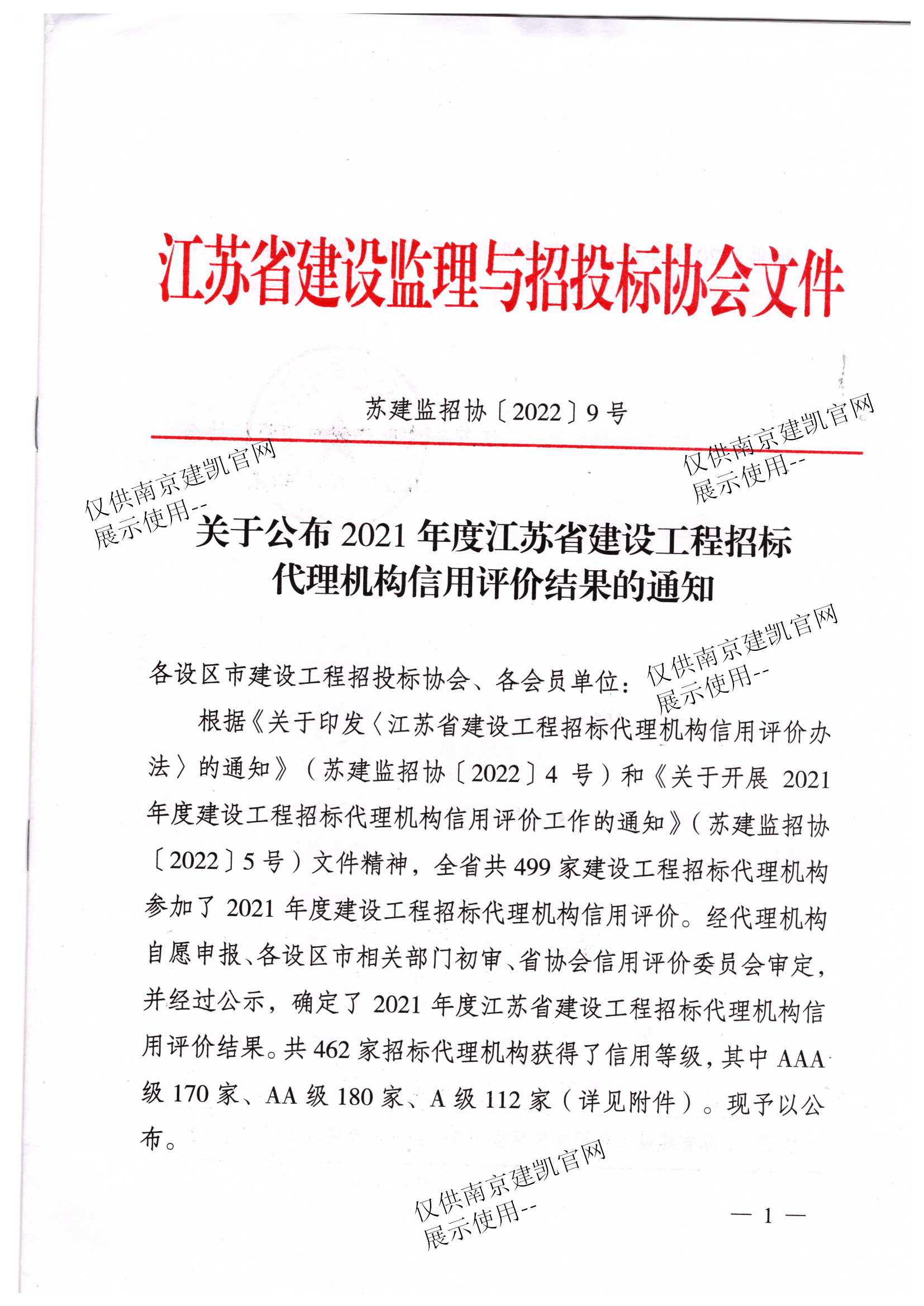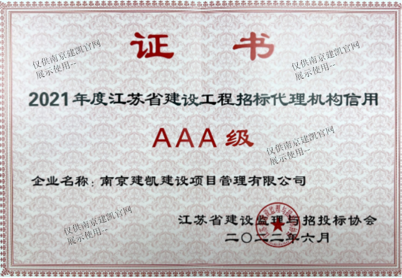 恭喜我司招標代理部在2021年度建設工程招標代理機構信用評價(jià)中榮獲“AAA”信用等級