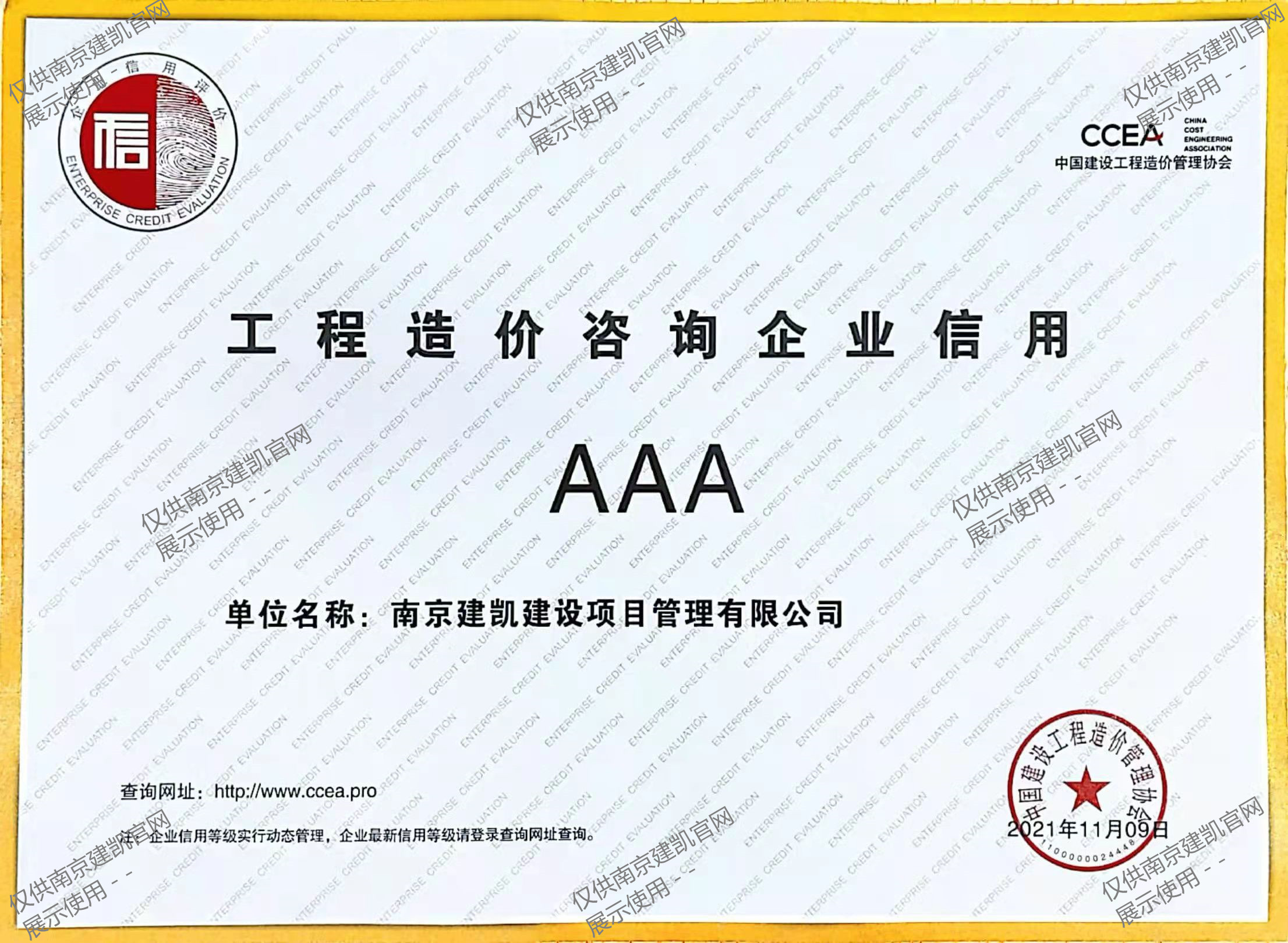 熱烈祝賀我司造價(jià)機構在2021年11月9日榮獲中國建設工程造價(jià)管理協(xié)會(huì )頒發(fā)的“工程造價(jià)咨詢(xún)企業(yè)信用“AAA”等級證書(shū)”